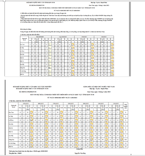 BẢN TIN DỰ BÁO, CẢNH BÁO THỜI TIẾT ĐIỂM ĐẾN 10 NGÀY KHU VỰC TỈNH KON TUM