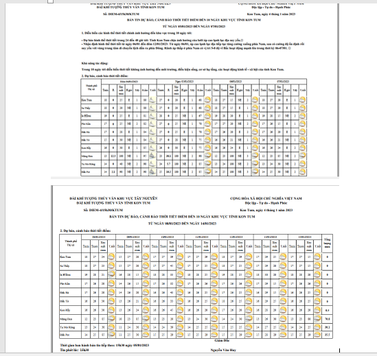 BẢN TIN DỰ BÁO, CẢNH BÁO THỜI TIẾT ĐIỂM ĐẾN 10 NGÀY KHU VỰC TỈNH KON TUM