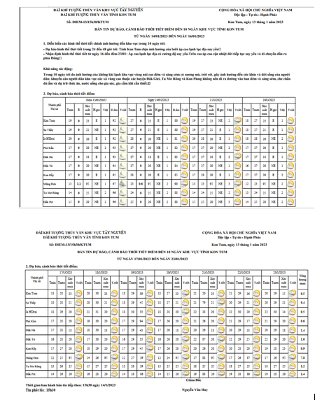 BẢN TIN DỰ BÁO, CẢNH BÁO THỜI TIẾT ĐIỂM ĐẾN 10 NGÀY KHU VỰC TỈNH KON TUM