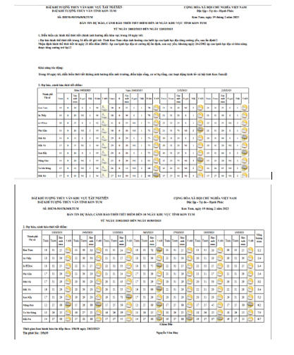 BẢN TIN DỰ BÁO, CẢNH BÁO THỜI TIẾT ĐIỂM ĐẾN 10 NGÀY KHU VỰC TỈNH KON TUM