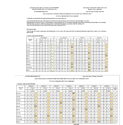 BẢN TIN DỰ BÁO, CẢNH BÁO THỜI TIẾT ĐIỂM ĐẾN 10 NGÀY KHU VỰC TỈNH KON TUM