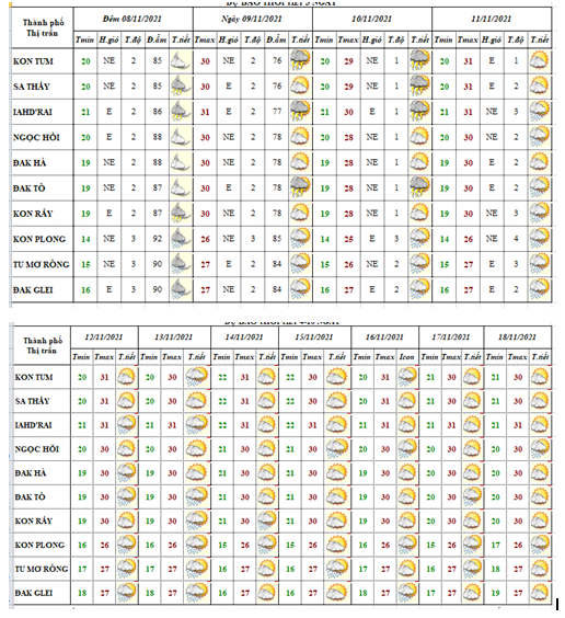 BẢN TIN THỜI TIẾT 10 NGÀY CÁC HUYỆN VÀ TP KON TUM