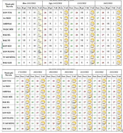 BẢN TIN DỰ BÁO THỜI TIẾT ĐIỂM 10 NGÀY 09 HUYỆN VÀ 01 THÀNH PHỐ