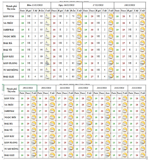 BẢN TIN DỰ BÁO THỜI TIẾT ĐIỂM 10 NGÀY 09 HUYỆN VÀ 01 THÀNH PHỐ