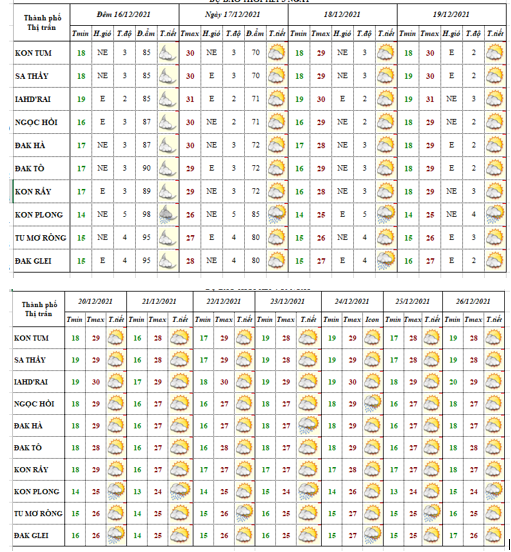 BẢN TIN DỰ BÁO THỜI TIẾT ĐIỂM 10 NGÀY 09 HUYỆN VÀ 01 THÀNH PHỐ