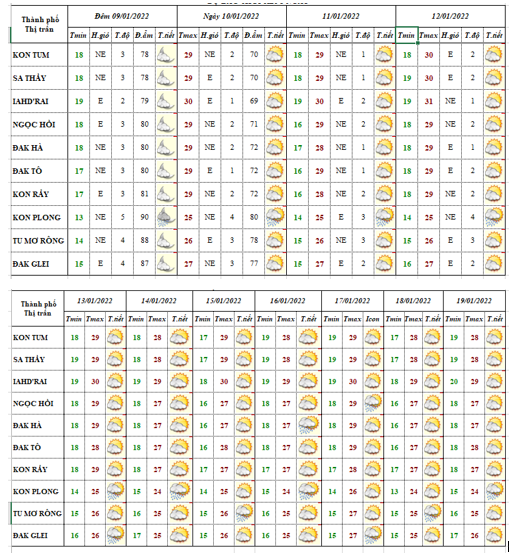 BẢN TIN DỰ BÁO THỜI TIẾT ĐIỂM ĐẾN 10 NGÀY 09 HUYỆN VÀ 01 THÀNH PHỐ