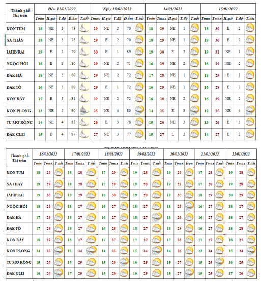 BẢN TIN DỰ BÁO THỜI TIẾT ĐIỂM ĐẾN 10 NGÀY 09 HUYỆN VÀ 01 THÀNH PHỐ