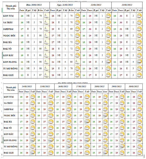 BẢN TIN DỰ BÁO THỜI TIẾT ĐIỂM ĐẾN 10 NGÀY 09 HUYỆN VÀ 01 THÀNH PHỐ