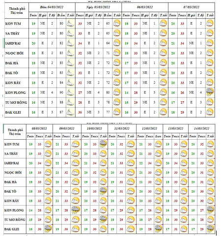 DỰ BÁO THỜI TIẾT 10 NGÀY 9 HUYỆN VÀ TP