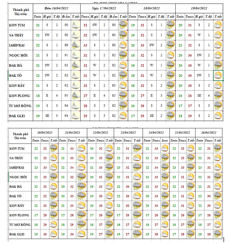 BẢN TI N THỜI TIẾT 10 NGAY 9 HUYỆN VÀ TP
