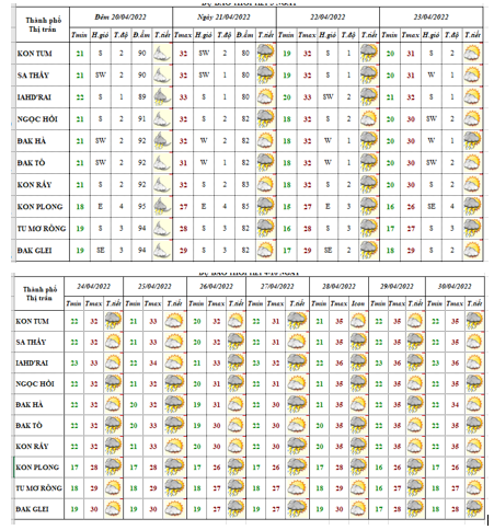 BẢN TI N THỜI TIẾT 10 NGAY 9 HUYỆN VÀ TP