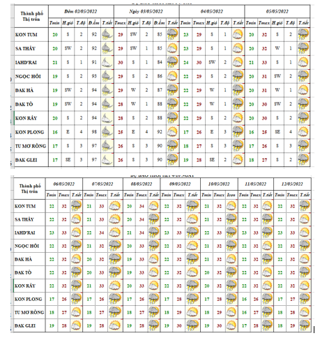 BẢN TIN DỰ BÁO THỜI TIẾT ĐIỂM 09 HUYỆN VÀ 01 THÀNH PHỐ