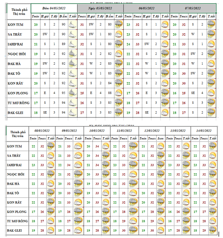 BẢN TIN DỰ BÁO THỜI TIẾT ĐIỂM 09 HUYỆN VÀ 01 THÀNH PHỐ