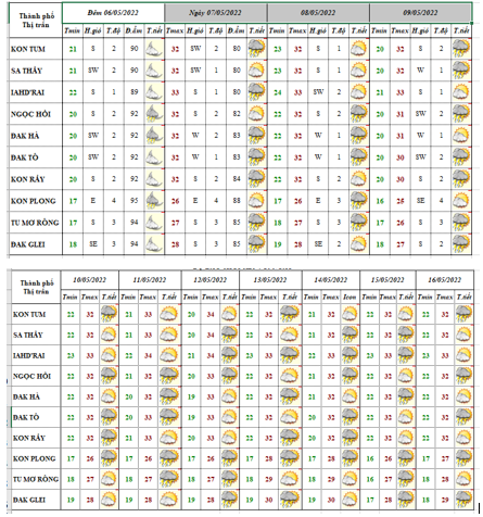 BẢN TIN THỜI TIẾT 10 NGÀY 9 HUYỆN VÀ TP