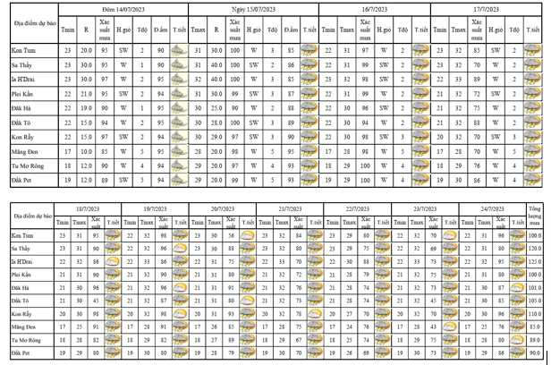 BẢN TIN DỰ BÁO, CẢNH BÁO THỜI TIẾT ĐIỂM ĐẾN 10 NGÀY KHU VỰC TỈNH KON TUM