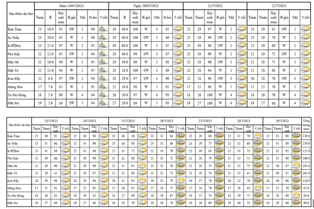BẢN TIN DỰ BÁO, CẢNH BÁO THỜI TIẾT ĐIỂM ĐẾN 10 NGÀY KHU VỰC TỈNH KON TUM