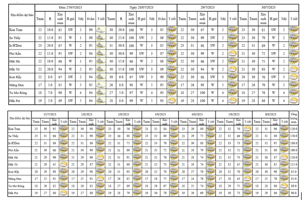 BẢN TIN DỰ BÁO, CẢNH BÁO THỜI TIẾT ĐIỂM ĐẾN 10 NGÀY KHU VỰC TỈNH KON TUM
