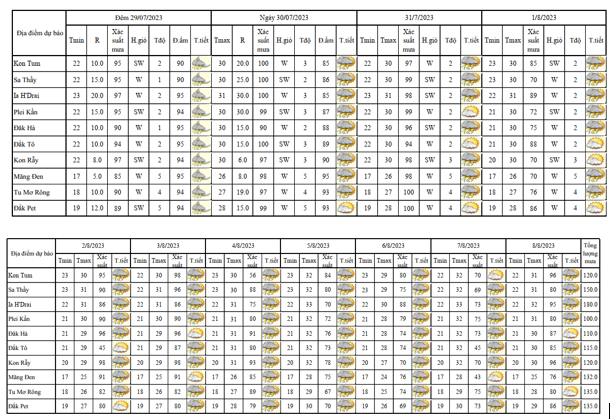BẢN TIN DỰ BÁO, CẢNH BÁO THỜI TIẾT ĐIỂM ĐẾN 10 NGÀY KHU VỰC TỈNH KON TUM