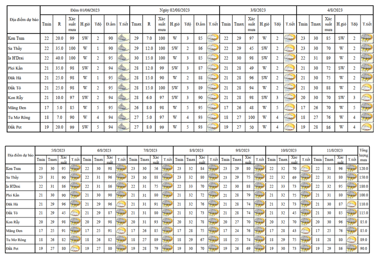 BẢN TIN DỰ BÁO, CẢNH BÁO THỜI TIẾT ĐIỂM ĐẾN 10 NGÀY KHU VỰC TỈNH KON TUM