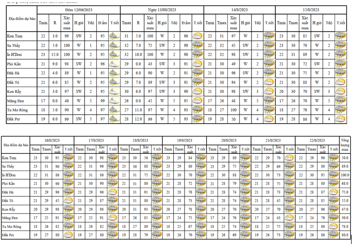 BẢN TIN DỰ BÁO, CẢNH BÁO THỜI TIẾT ĐIỂM ĐẾN 10 NGÀY KHU VỰC TỈNH KON TUM