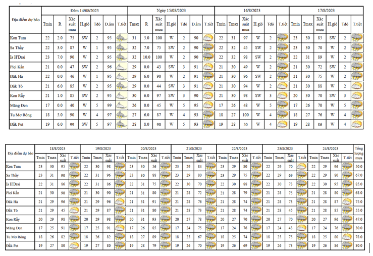 BẢN TIN DỰ BÁO, CẢNH BÁO THỜI TIẾT ĐIỂM ĐẾN 10 NGÀY KHU VỰC TỈNH KON TUM
