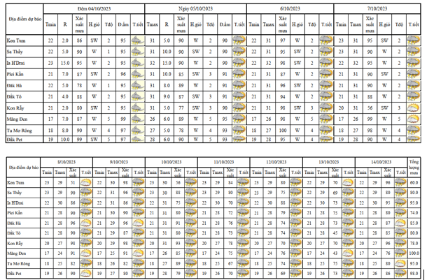 BẢN TIN DỰ BÁO, CẢNH BÁO THỜI TIẾT ĐIỂM ĐẾN 10 NGÀY KHU VỰC TỈNH KON TUM