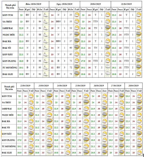 BẢN TIN THỜI TIẾT CÁC HUYỆN, ĐẾN 10 NGÀY