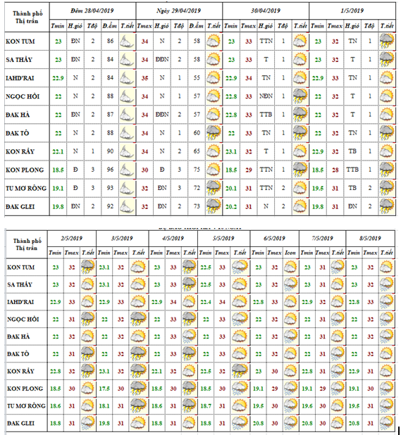 BẢN TIN DỰ BÁO THỜI TIẾT ĐIỂM CÁC HUYỆN ĐẾN 10 NGÀY.
