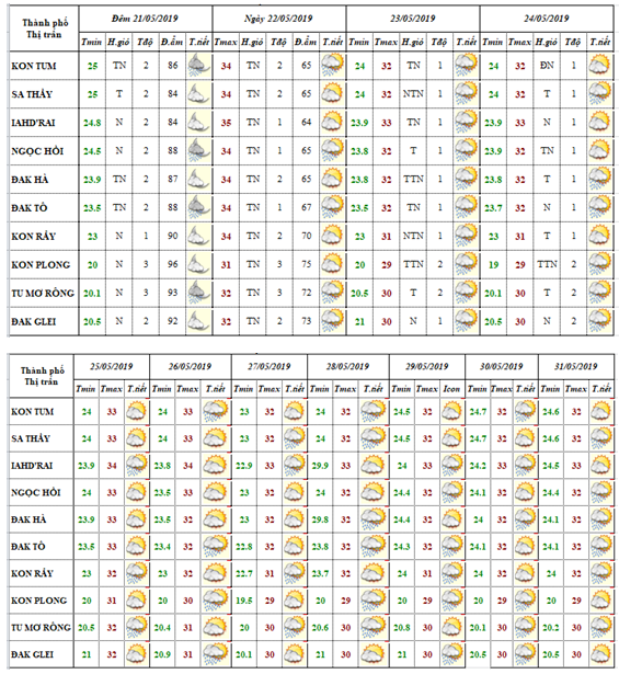 BẢN TIN DỰ BÁO TIẾT CÁC HUYỆN ĐẾN 10 NGÀY