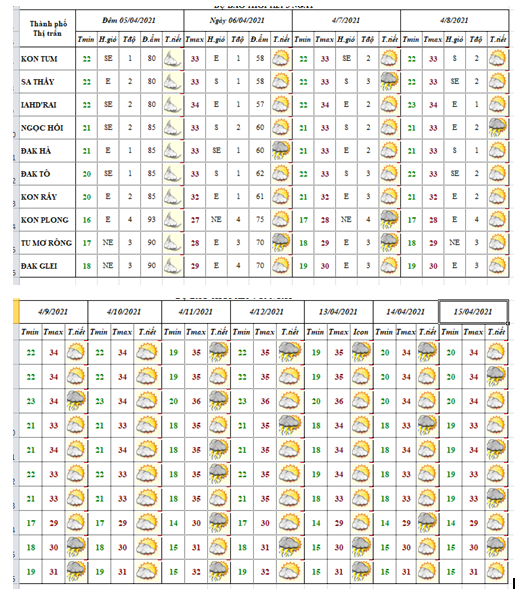 BẢN TIN DỰ BÁO THỜI TIẾT ĐIỂM 10 NGÀY CÁC HUYỆN VÀ TP. KON TUM
