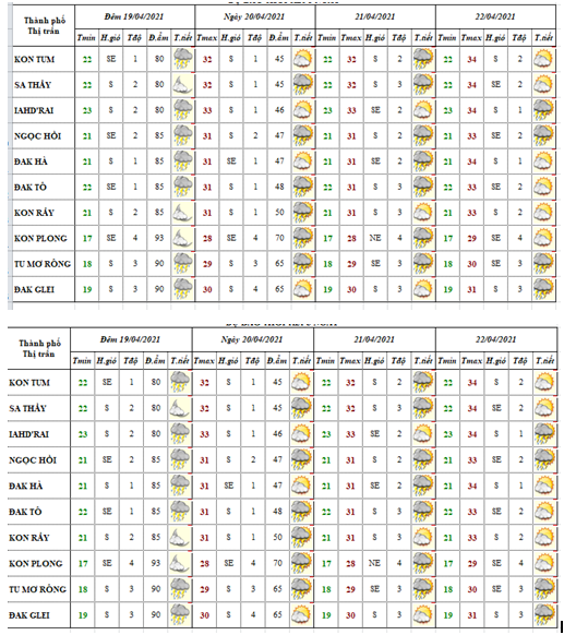 BẢN TIN THỜI TIẾT 10 NGÀY CÁC HUYỆN VÀ TP KON TUM