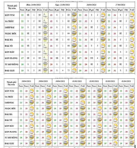BẢN TIN THỜI TIẾT 10 NGÀY CÁC HUYỆN VÀ TP KON TUM