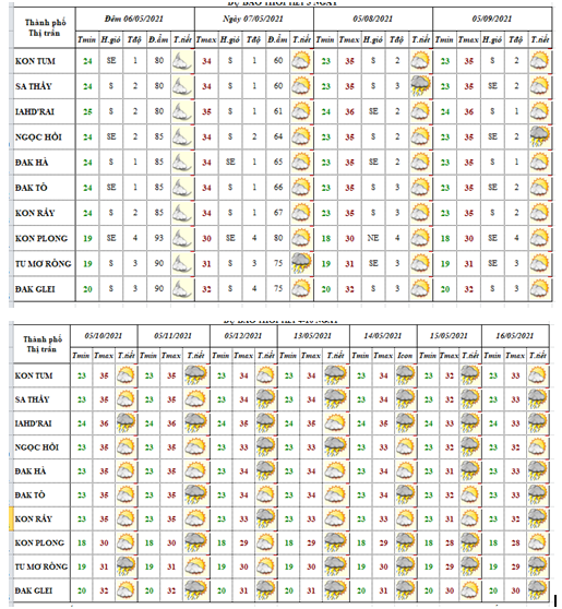 BẢN TIN THỜI TIẾT 10 NGÀY CÁC HUYỆN VÀ TP KON TUM