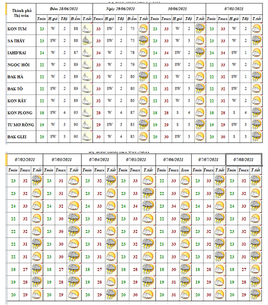 BẢN TIN THỜI TIẾT 10 NGÀY CÁC HUYỆN VÀ TP KON TUM