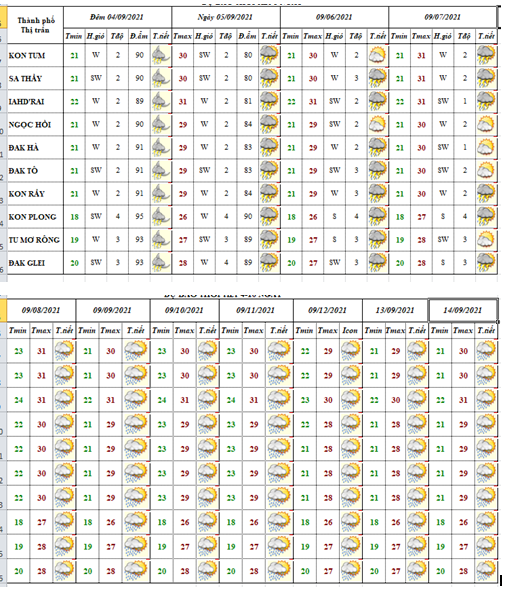 BẢN TIN DỰ BÁO THỜI TIẾT ĐIỂM 10 NGÀY CÁC HUYỆN VÀ TP. KON TUM