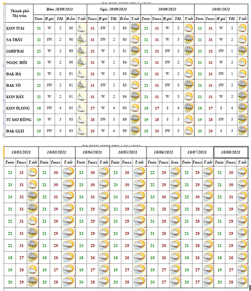BẢN TIN DỰ BÁO THỜI TIẾT ĐIỂM 10 NGÀY CÁC HUYỆN VÀ TP. KON TUM