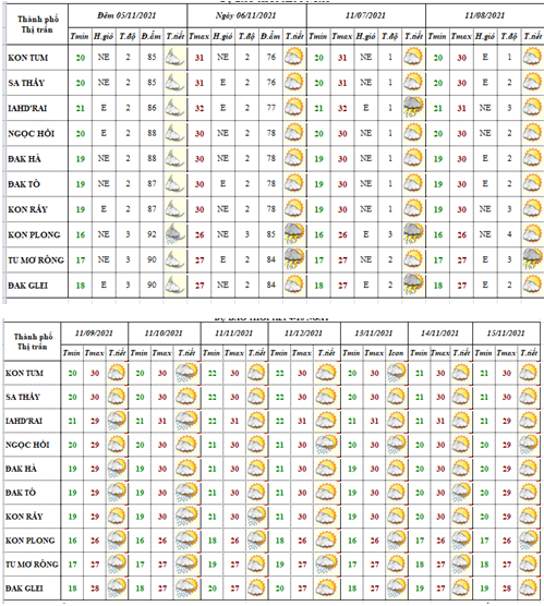 BẢN TIN THỜI TIẾT 10 NGÀY CÁC HUYỆN VÀ TP KON TUM