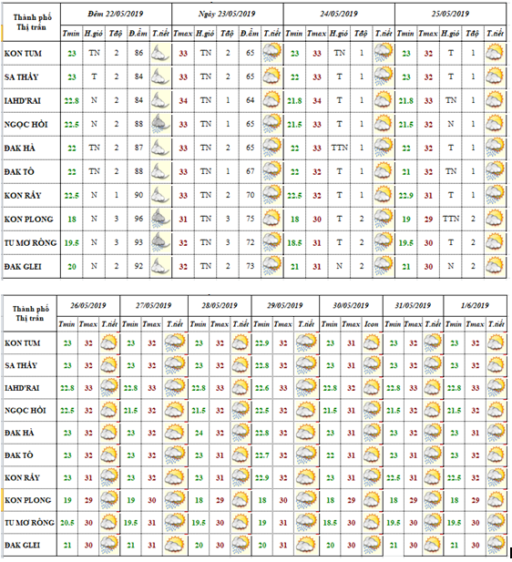 BẢN TIN THỜI TIẾT 10 NGÀY CÁC HUYỆN