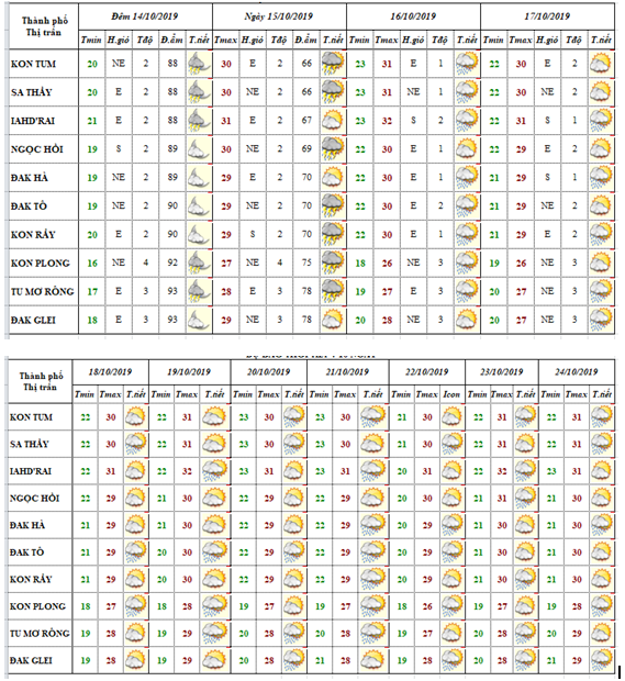 DỰ BÁO THỜI TIẾT CÁC HUYỆN VÀ TP KON TUM TRONG 10 NGÀY TỚI