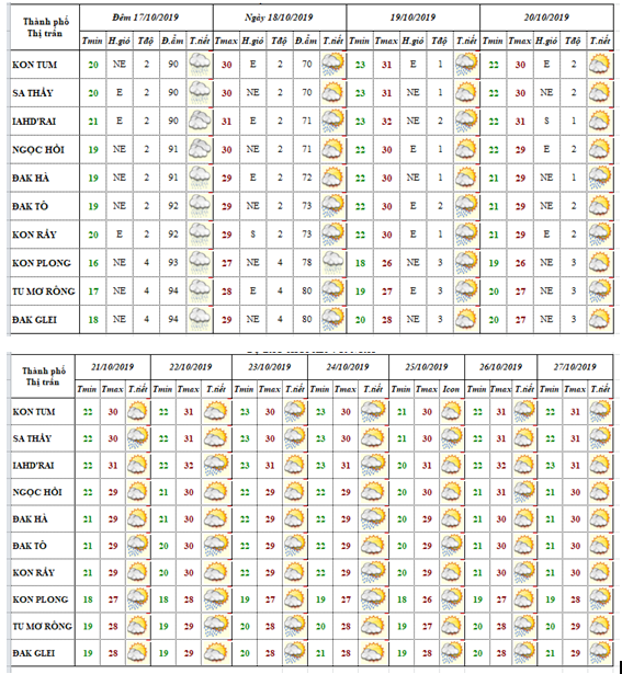 DỰ BÁO THỜI TIẾT CÁC HUYỆN VÀ TP KON TUM TRONG 10 NGÀY TỚI