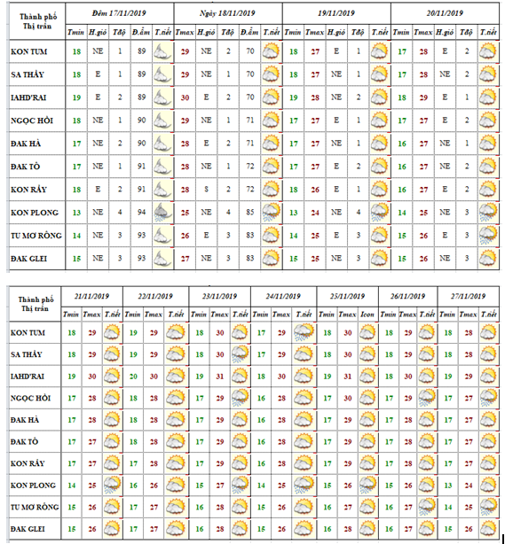 BẢN TIN THỜI TIẾT CÁC HUYỆN VÀ TP KON TUM TRONG 10 NGÀY TỚI
