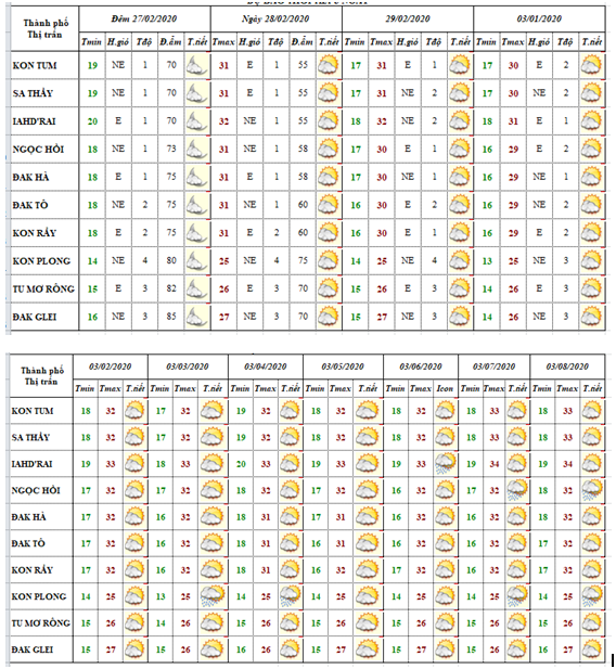 BẢN TIN THỜI TIẾT CÁC HUYỆN VÀ TP KON TUM TRONG 10 NGÀY TỚI