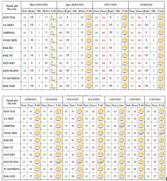 BẢN TIN THỜI TIẾT CÁC HUYỆN VÀ TP KON TUM TRONG 10 NGÀY TỚI