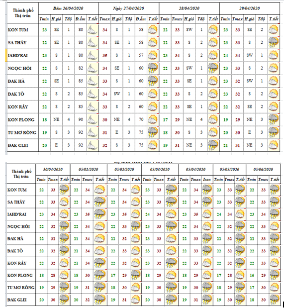 BẢN TIN THỜI TIẾT CÁC HUYỆN VÀ TP KON TUM TRONG 10 NGÀY TỚI