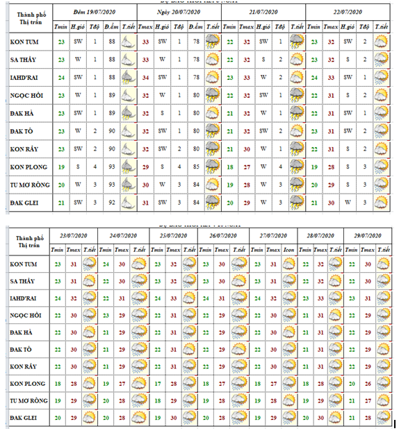 BẢN TIN THỜI TIẾT CÁC HUYỆN VÀ TP KON TUM TRONG 10 NGÀY TỚI