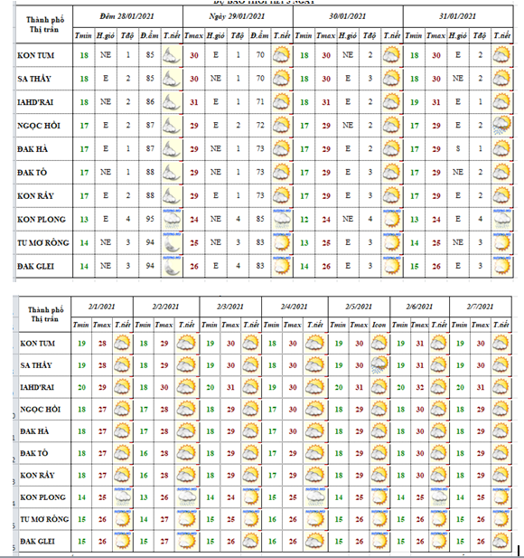 BẢN TIN DỰ BÁO THỜI TIẾT ĐIỂM 10 NGÀY CÁC HUYỆN VÀ TP. KON TUM