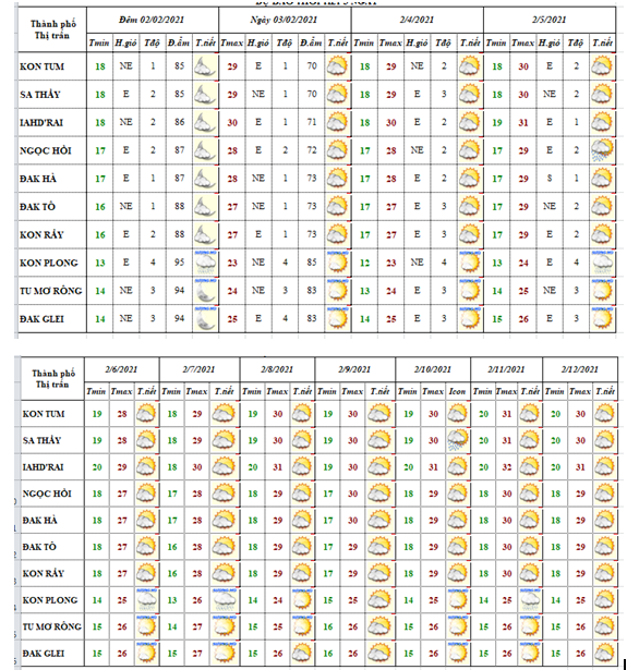 BẢN TIN DỰ BÁO THỜI TIẾT ĐIỂM 10 NGÀY CÁC HUYỆN VÀ TP. KON TUM