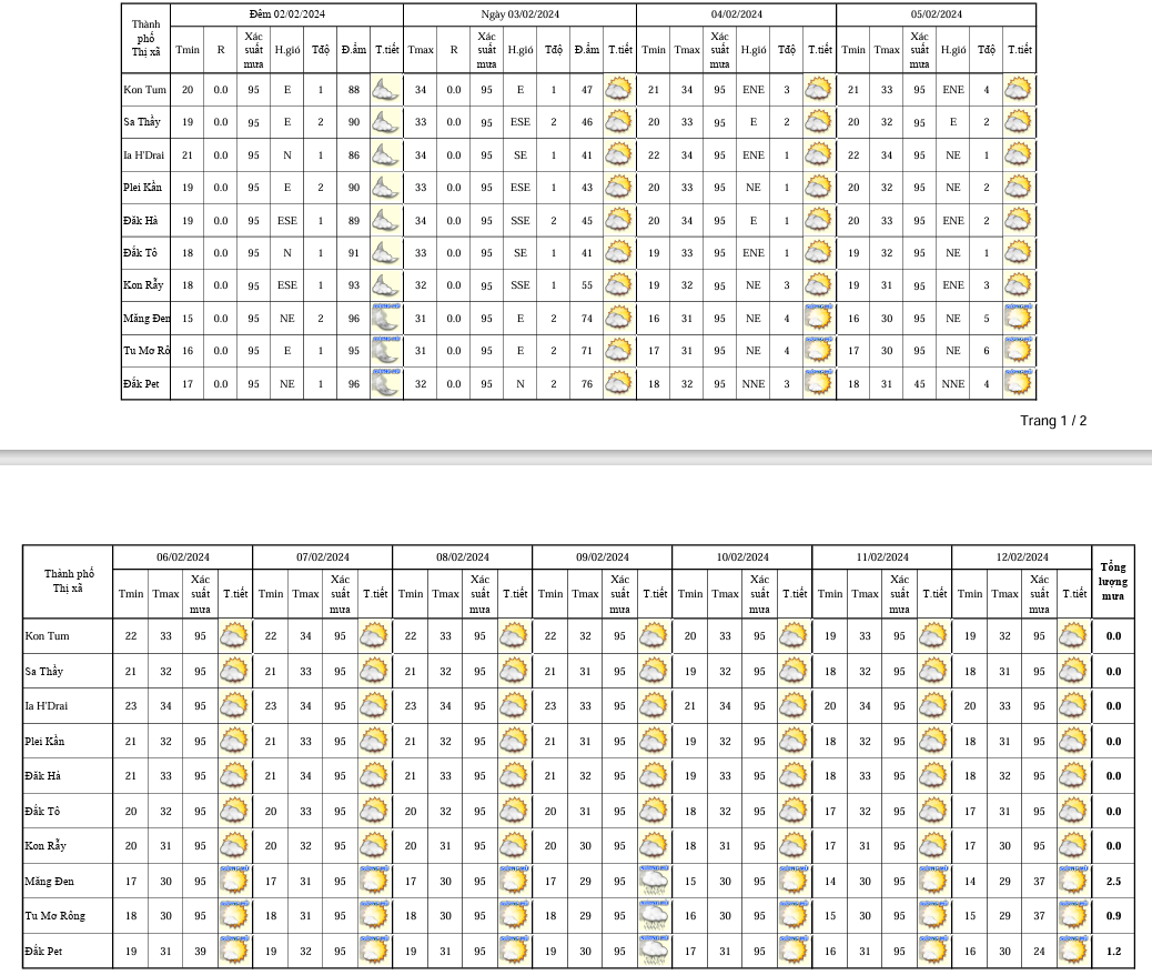 BẢN TIN DỰ BÁO, CẢNH BÁO THỜI TIẾT ĐIỂM ĐẾN 10 NGÀY KHU VỰC TỈNH KON TUM