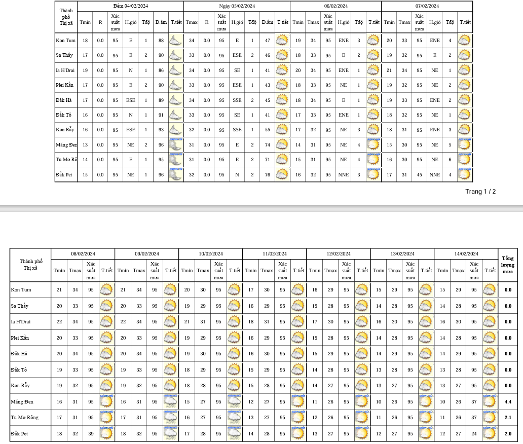 BẢN TIN DỰ BÁO, CẢNH BÁO THỜI TIẾT ĐIỂM ĐẾN 10 NGÀY KHU VỰC TỈNH KON TUM