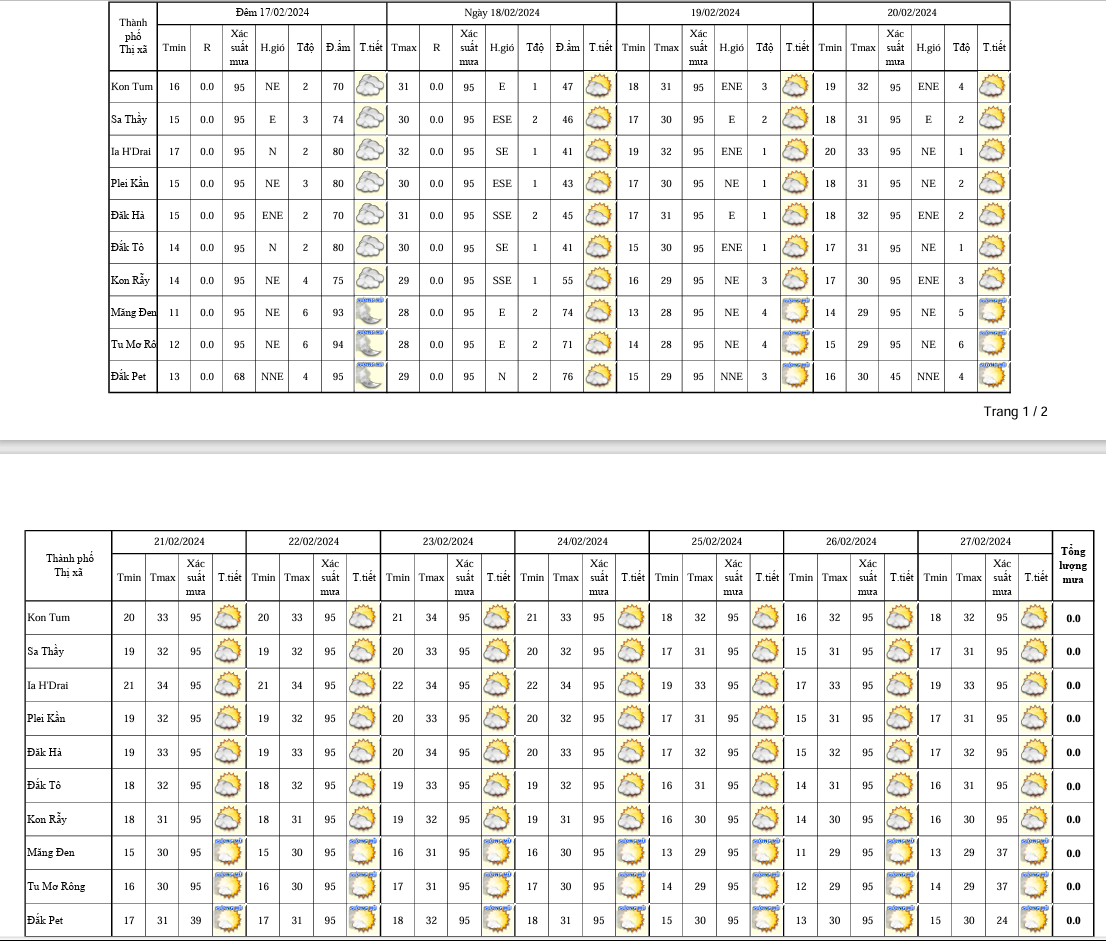 BẢN TIN DỰ BÁO, CẢNH BÁO THỜI TIẾT ĐIỂM ĐẾN 10 NGÀY KHU VỰC TỈNH KON TUM